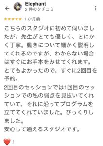 ピラティスに興味を持ちながらも、勇気を出してお越しいただけたとのこと、とても嬉しく思います。スタジオの雰囲気やマシンについてもお褒めいただきありがとうございます。
